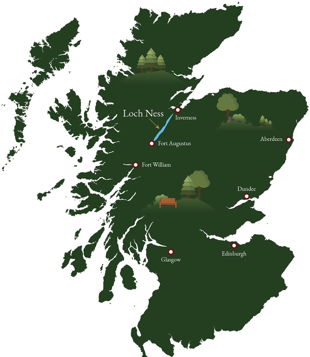 Long d'environ 35 km, le Loch Ness est le plus grand lac du Great Glen, une faille géologique qui traverse l'Écosse. Bien entendu, il est également connu pour sa résidence tristement célèbre, le monstre du Loch Ness. Surnommée Nessie, la créature est le plus souvent décrite comme ayant une petite tête sur un long cou sinueux, un corps épais, des nageoires semblables à celles d'un phoque et une longue queue, ce qui lui donne presque un air préhistorique. Les monstres aquatiques font depuis longtemps partie du folklore écossais.